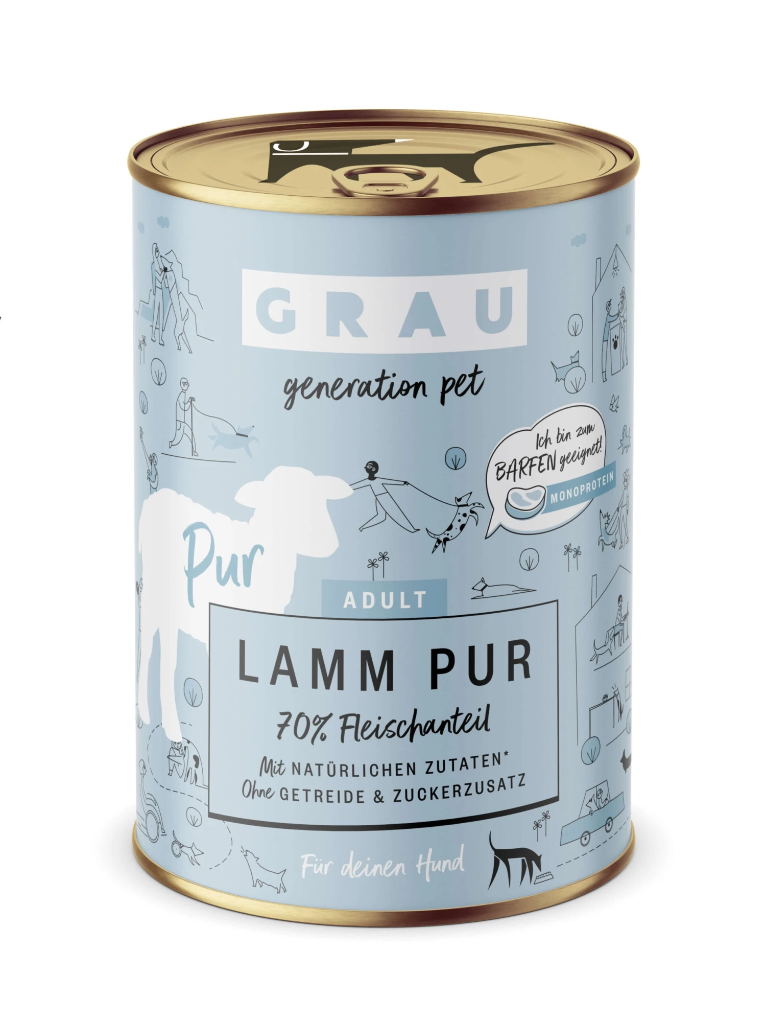Grau Lamm Pur mit Leinöl – Nassfutter