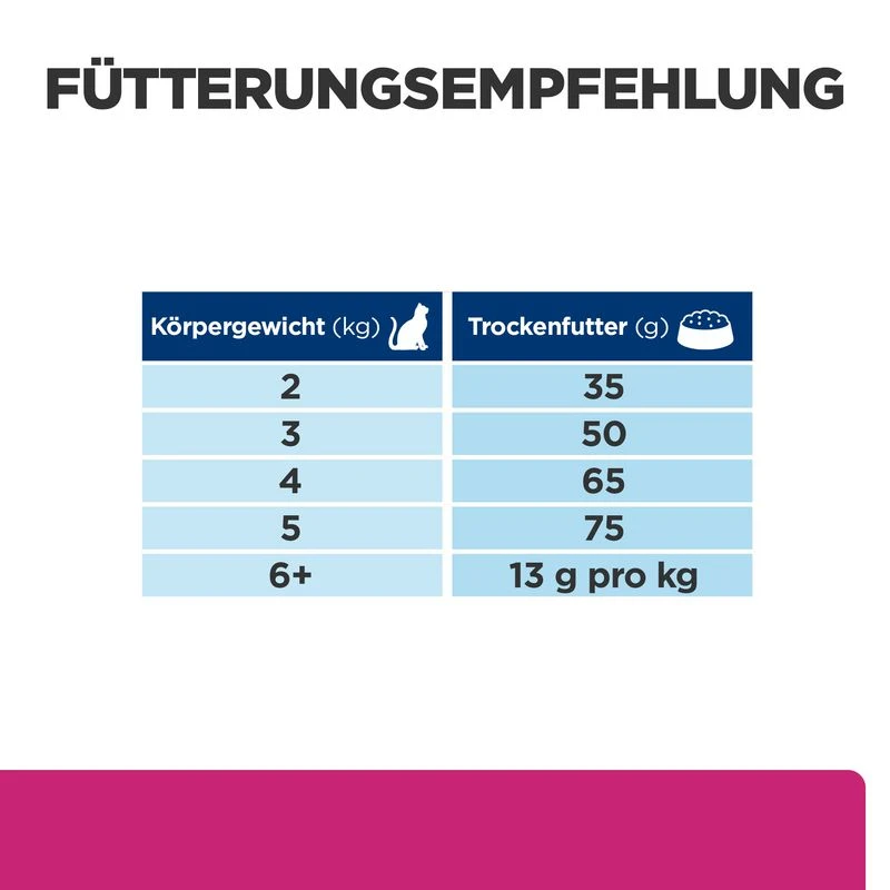 | Gewicht Katze | Dose 82g | Trockenfutter |